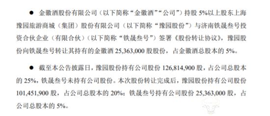 而在今年7月24日,公司发布公告称,豫园股份拟通过协议转让方式向铁晟叁号出售金徽酒2536.3万股股份,交易总价款为5.99亿元。叠加两次总价款,“复星系”在金徽酒上套现已超25亿元。