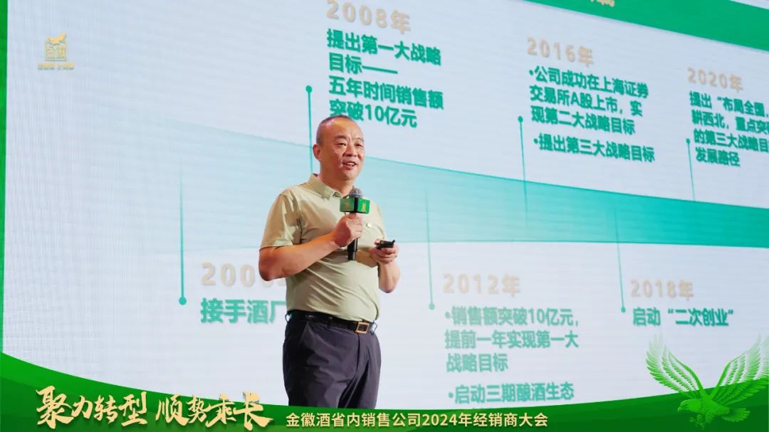 他表示,相信相信的力量,就是要相信专注的力量、相信共创的力量、相信时间的力量。自2018年金徽酒“二次创业”以来,销售业绩连年攀升,2024年上半年营收利润双增、产品结构持续优化,“二次创业”取得阶段性突破:公司营销模式由“渠道运营”向“渠道+用户”双轮驱动模式顺利变革;公司在组织变革、人才优化、方法论等方面持续迭代,管理机制更具竞争力和前瞻性;在产品力、品牌力、用户力、渠道力和组织力方面五力齐发持续共创,改革创新取得新进展,转型升级取得新突破;通过“1+1+3战略规划”,坚持长期主义,坚持厂商共创共享,用商业模式的确定性应对环境的不确定性,明确了发展是解决一切问题的关键。他强调,所有金徽合作伙伴们要坚信模式,相信目标,只有相信,才能看见。