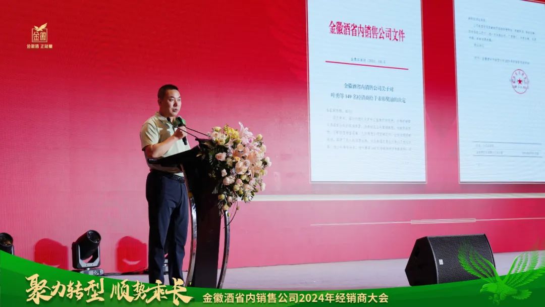 随后,金徽酒董事会秘书任岁强作《资本市场发展与经销商持股报告》专题分享。金徽酒副总裁、首席人力资源官石少军作《金徽酒企业文化》专题分享。金徽酒财务总监、首席财务官谢小强宣读了经销商表彰奖励决定。本次,金徽酒发放600万元共创共享奖金,奖励“二次创业”以来做出优异成绩的经销商。