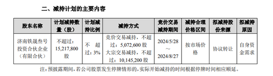 需要说明的是,工商信息显示,铁晟叁号的主要出资人来自山东国资。