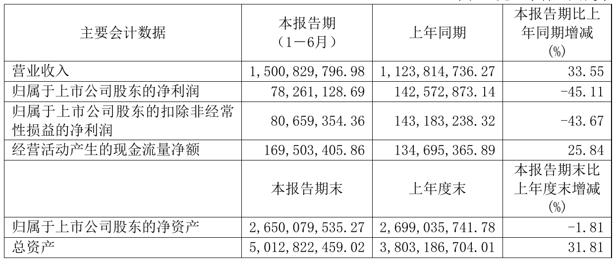8月20日,世运电路(603920)近日发布2021年半年度报告,报告期内营业收入1,500,829,796.98元,同比增加33.55%;净利78,261,128.69元,同比净利减少45.11%。