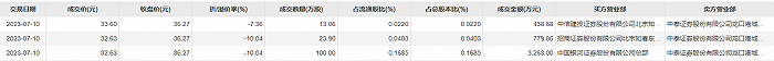 中科软7月10日大宗交易成交136.96万股,成交额4481.54万元,占当日总成交额的20.74%,成交均价32.72元,较市场收盘价36.27元折价9.79%,其中最高成交价33.6元,最低成交价32.63元。