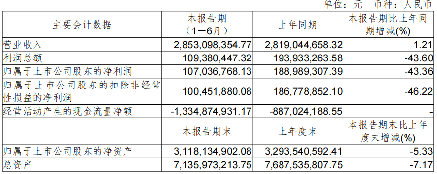 2025 年上半年营收 28.53 亿,同比增长 1.21%;净利润 1.07 亿,同比减少 43.36%。