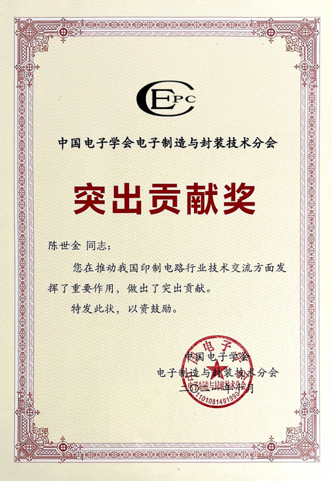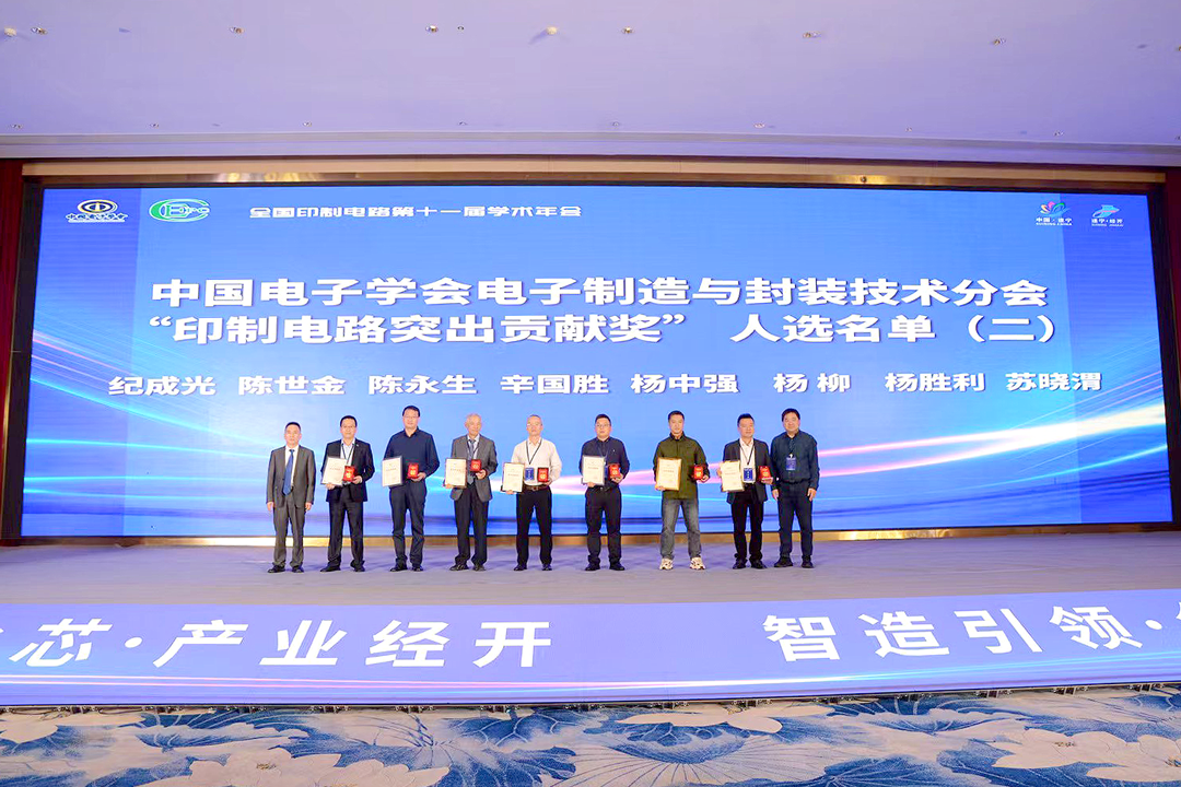 10月23-24日,由中国电子学会印制电路制造与封装技术分会(CEPC)举办的全国印制电路第十一届学术年会暨遂宁市产业促进大会在四川遂宁召开。我司技术管理部数名人员应邀参加并发表两个大会演讲报告;技术管理部总监陈世金获颁CEPC“印制电路突出贡献奖”。