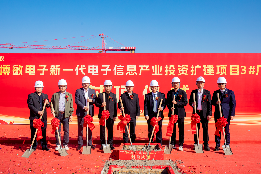 展翅翱翔正当时,博敏一路向前驰!在各级领导的关怀支持和各方团队的共同努力下,博敏电子新一代电子信息产业投资扩建项目(以下简称“梅州新项目”)3#厂房于今日喜封金顶。