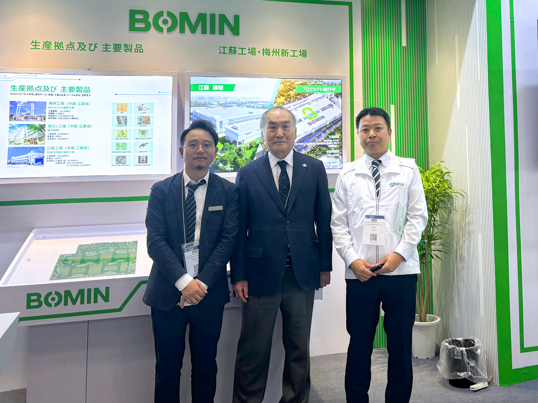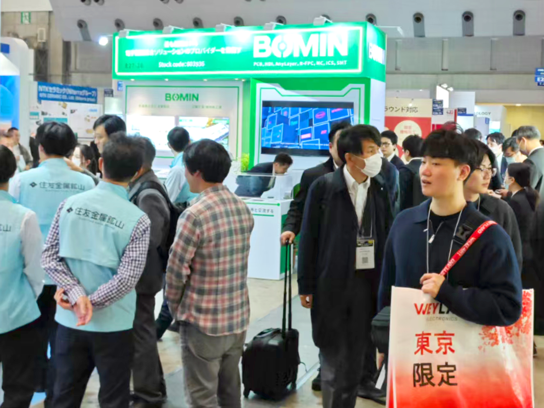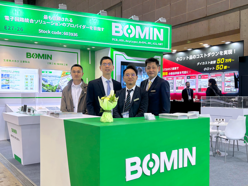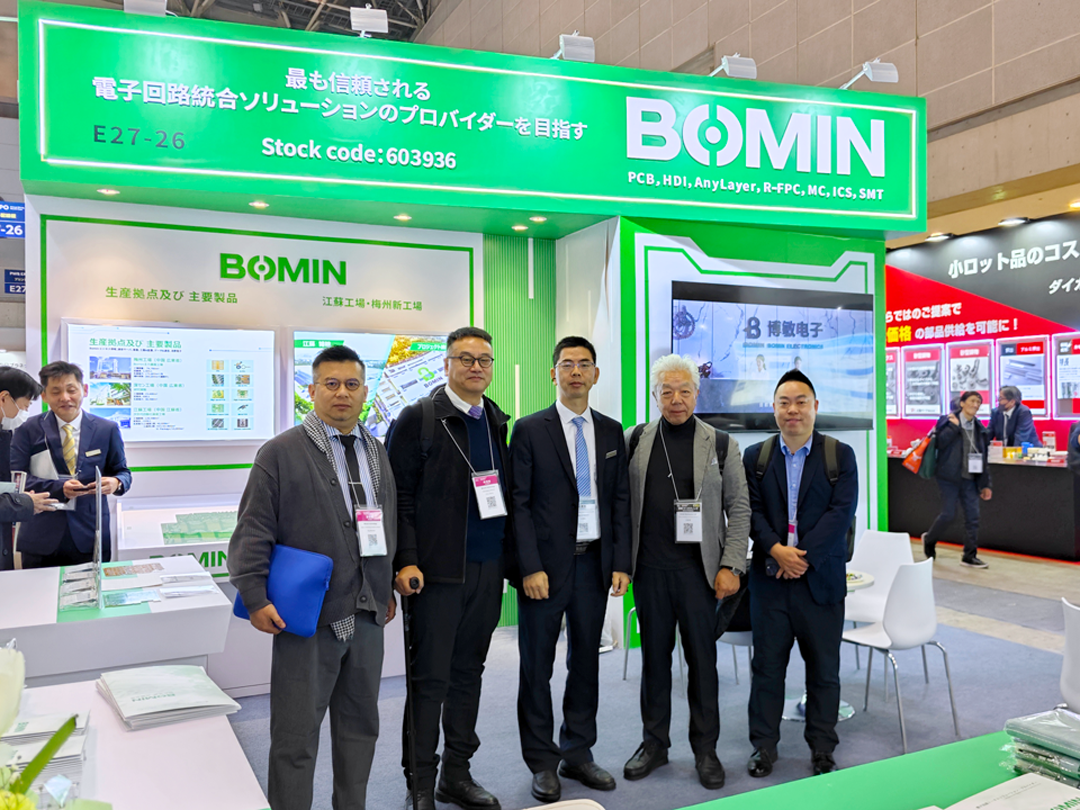本次展览会,我司销售管理部副总何坚明、国际销售二部总监胡艳红及各销售精英齐聚展会前沿,全面展示了BOMIN在Anylayer HD、高频高速、高多层、HDI软硬结合板、陶瓷基板等产品的技术实力,深度展现了BOMIN在AI服务器、汽车电子、消费电子、医疗工控、通讯技术等应用领域的一站式解决方案。