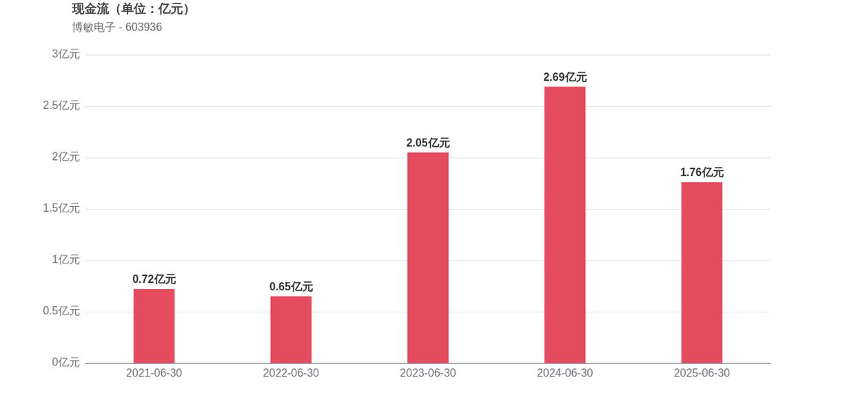 在经营稳健性方面,博敏电子面临现金流和负债率双重压力,存货周转效率有所提升但整体经营质量仍需关注。经营活动产生的现金流净额为1.76亿元,同比下滑34.57%,显示出公司现金获取能力的减弱。此外,2025年上半年的资产负债率为54.67%,同比增长7.89个百分点,这意味着公司财务杠杆进一步提升。