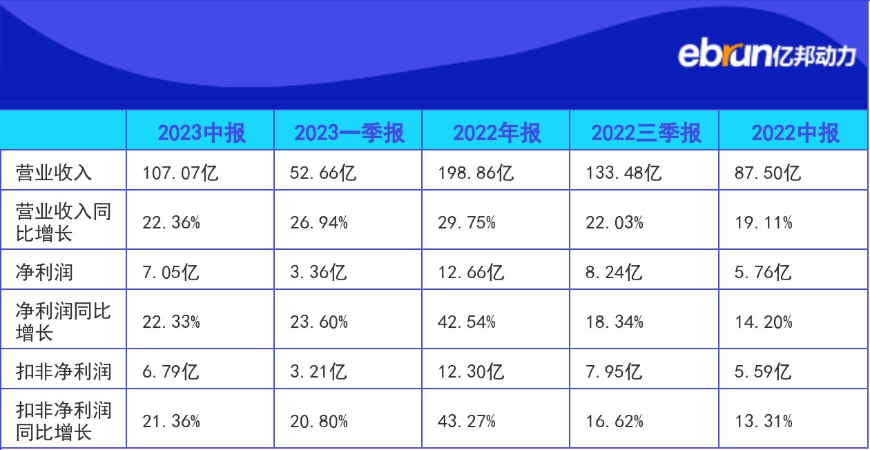 对比近一年的的表现业绩,益丰药房公司,2022年报、2023一季报、2023中报的营收分别为198.86亿、52.66亿、107.07亿,增速分别为29.75%、26.94%、22.36%。营收一直维持增长的状态。从公司盈利表现来看,净利润分别为12.66亿、3.36亿、7.05亿,同比增长率为分别为42.54%、23.60%、22.33%。去年至今,已连续3个季度实现盈利。