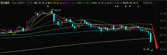 9月27日,雪龙集团开盘1分钟跌停,虽然此后有拉升动作,仍未成功翘板,成为除ST外唯一跌停个股。截至发文,公司跌幅为10%,股价为21.6元,总市值为45.32亿元。