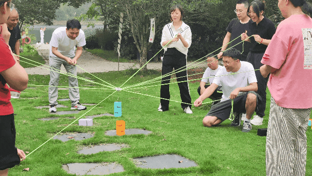 下午,好玩又紧张的趣味团建游戏开始啦,每位员工都士气高涨,全身心参与其中。