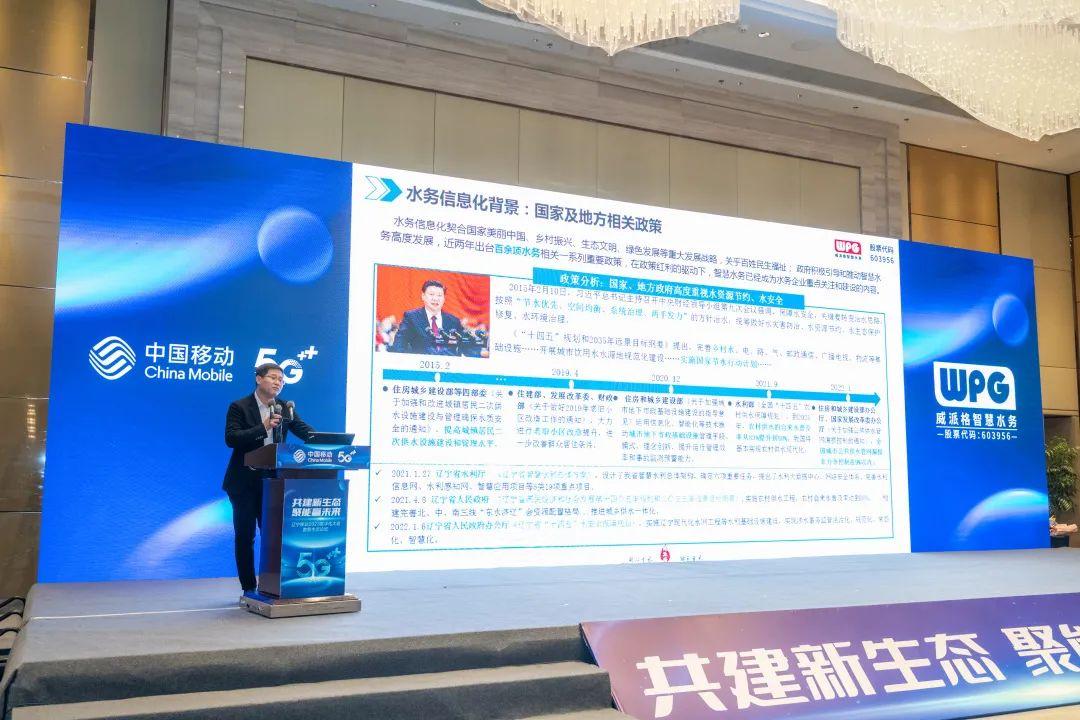 在本次大会上,威派格辽宁分公司总经理孙国辉作为战略合作伙伴代表,做了“智慧水务,你我共进—中国移动&威派格”主题演讲,阐述了在智慧水务领域,中国移动和威派格双方的融合优势,以及合作双方合作以来的落地案例,并展望了中国移动和威派格合作和协同发展的三个阶段。