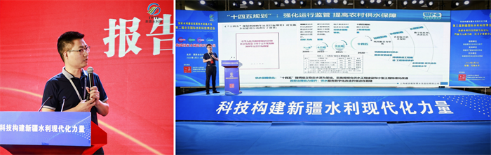 威派格西北大区解决方案总监聂海泊在“新疆水利科技创新发展论坛暨聚力五新突破—优秀企业推介会”现场进行题为《智慧水厂建设技术创新实践与应用》的发言,聂海泊表明威派格结合农村供水政策以及核心痛点,聚焦在模块化水厂建设,根据不同水源特性,展示不同工艺、不同形式的智能化水厂产品,并通过实际案例的结合,更加立体地呈现了“智能硬件+专业软件+智慧平台+行业物联网+全面服务”五位一体的综合解决方案。