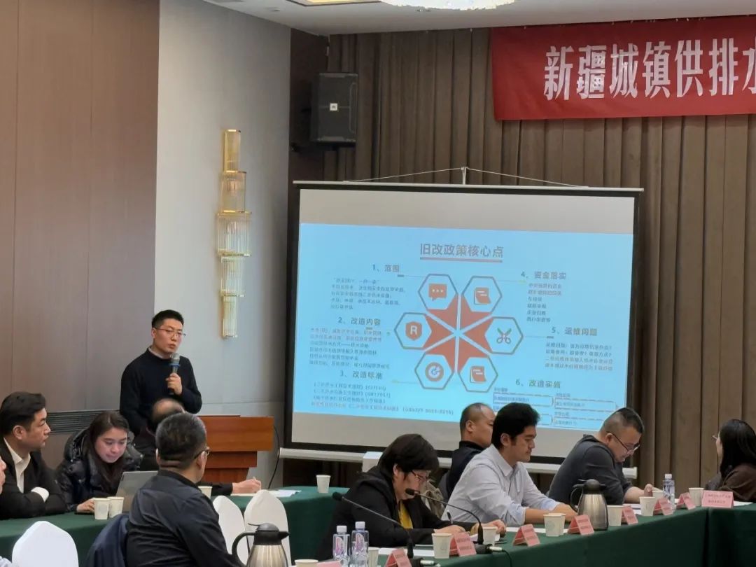 会议现场,自治区住建厅城乡人居环境发展促进中心市政科科长马文强、自治区城镇供排水协会秘书长张文、副秘书长张勇悉数到场,与疆内各地州水司负责人共聚一堂。作为城市供水的“神经末梢”,二次供水设施直接关系千家万户的水质安全,其改造移交的痛难点亟待破局。此次会议以“标准引领”与“韧性建设”为双轮驱动,旨在打通从政策到实践的最后一公里。