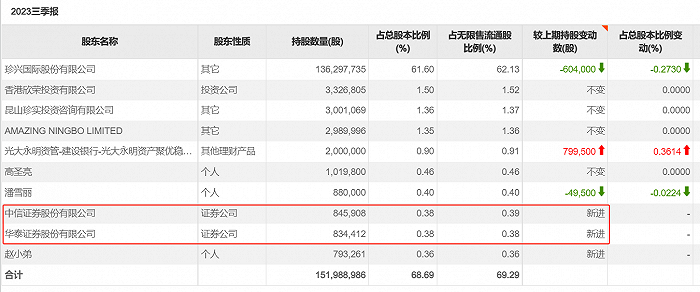 中信证券和华泰证券更是提前“埋伏”在这家连年亏损的上市公司中。2023年三季报显示,中信证券和华泰证券为新进股东,分别建仓84.59万股和83.44万股,持有的公司股份分别为0.39%和0.38%。