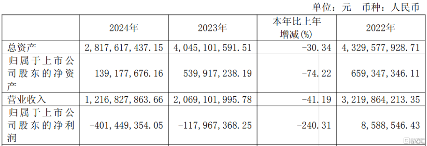 而2024年经营状况持续恶化,全年营业收入仅12.17亿元,同比下降41.19%;归母净利润亏损扩大至4.01亿元,同比下降240.31%。