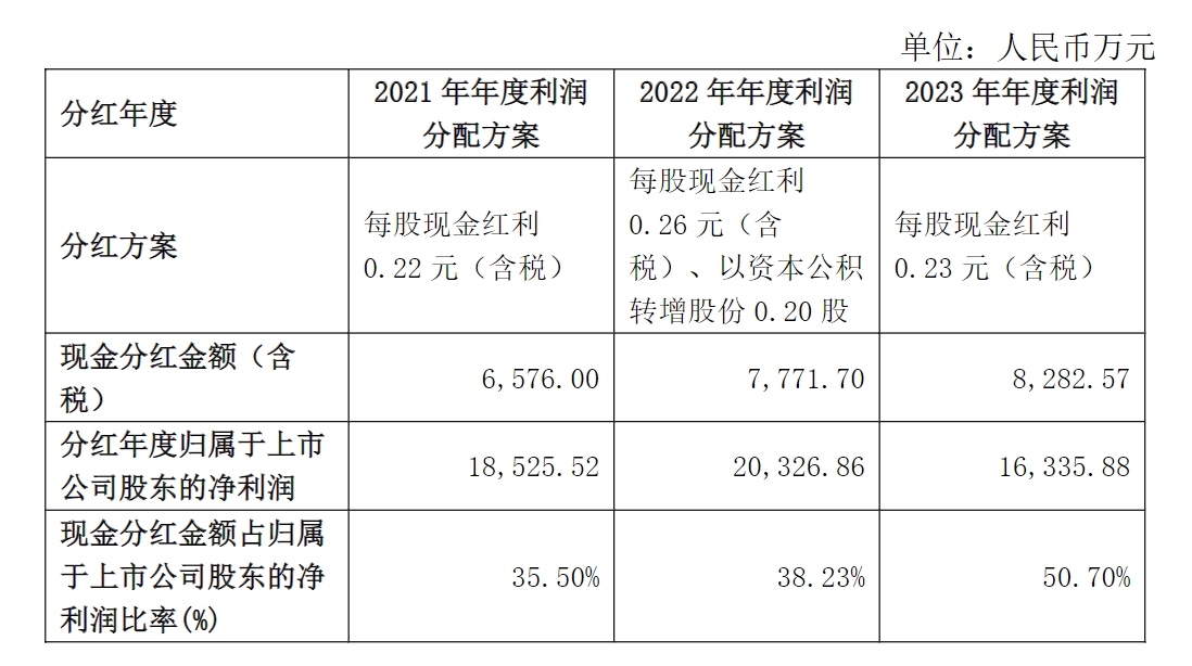 公司高度重视对股东的合理回报,始终坚持将股东利益放在重要位置,实施科学、持续、稳定的分红政策,积极采取以现金为主的利润分配方式,持续回报股东。公司最近三年的分红情况如下:
