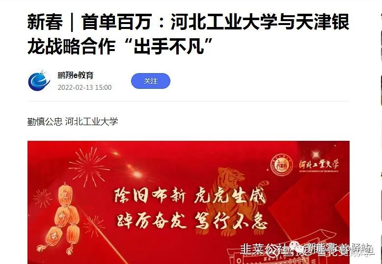 据悉,2022年1月19日,河北工业大学与银龙股份有限公司签署了“新能源产业技术合作协议”。副校长马国伟、银龙股份有限公司董事长谢志峰共同出席签字仪式。国家大学科技园、国家技术转移中心及相关学院负责人和教授出席签约仪式。