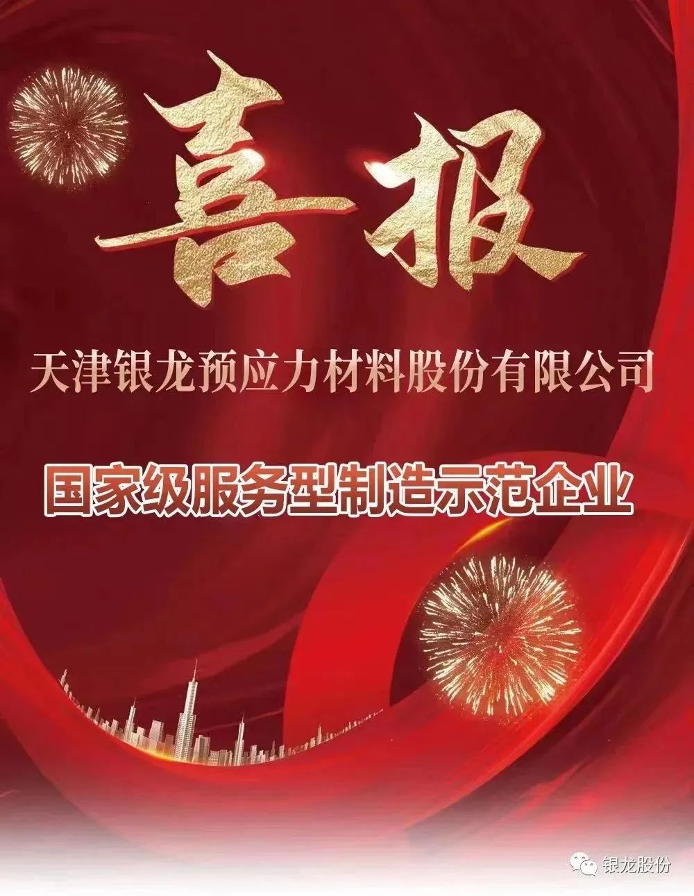 日前,经过申报推荐、专家评审、现场考查、网上公示等工作,工业和信息化部办公厅发布第四批服务型制造示范名单,天津银龙预应力材料股份有限公司入选示范企业名单。
