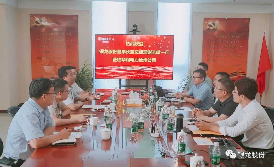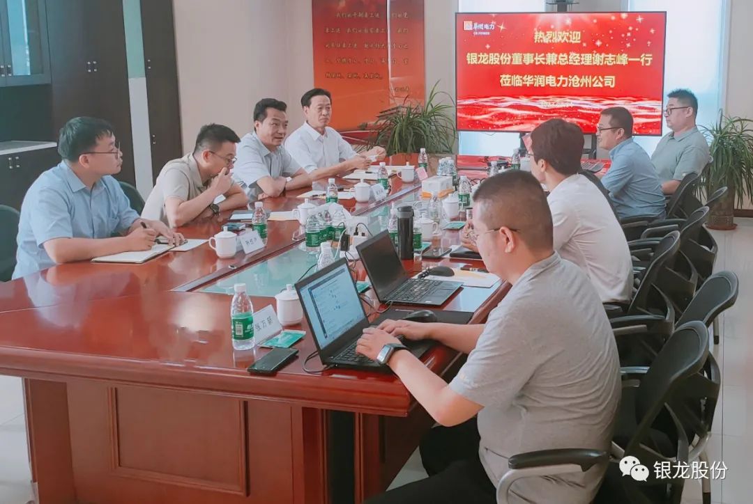 董事长谢志峰首先就华润电力新能源公司在河间获得100MW风电指标表示祝贺,回顾5月底丁总带队到银龙股份总部进行洽谈交流,双方就各自在河间市风力发电项目合作达成初步共识,此次来到华润电力沧州公司本着友好、互惠、共进原则,进行深入实际交流。银龙股份将发挥本地优势,给予华润电力河间项目提供全方位支持和服务,助力华润河间项目与银龙河间项目同步顺利落地推进。