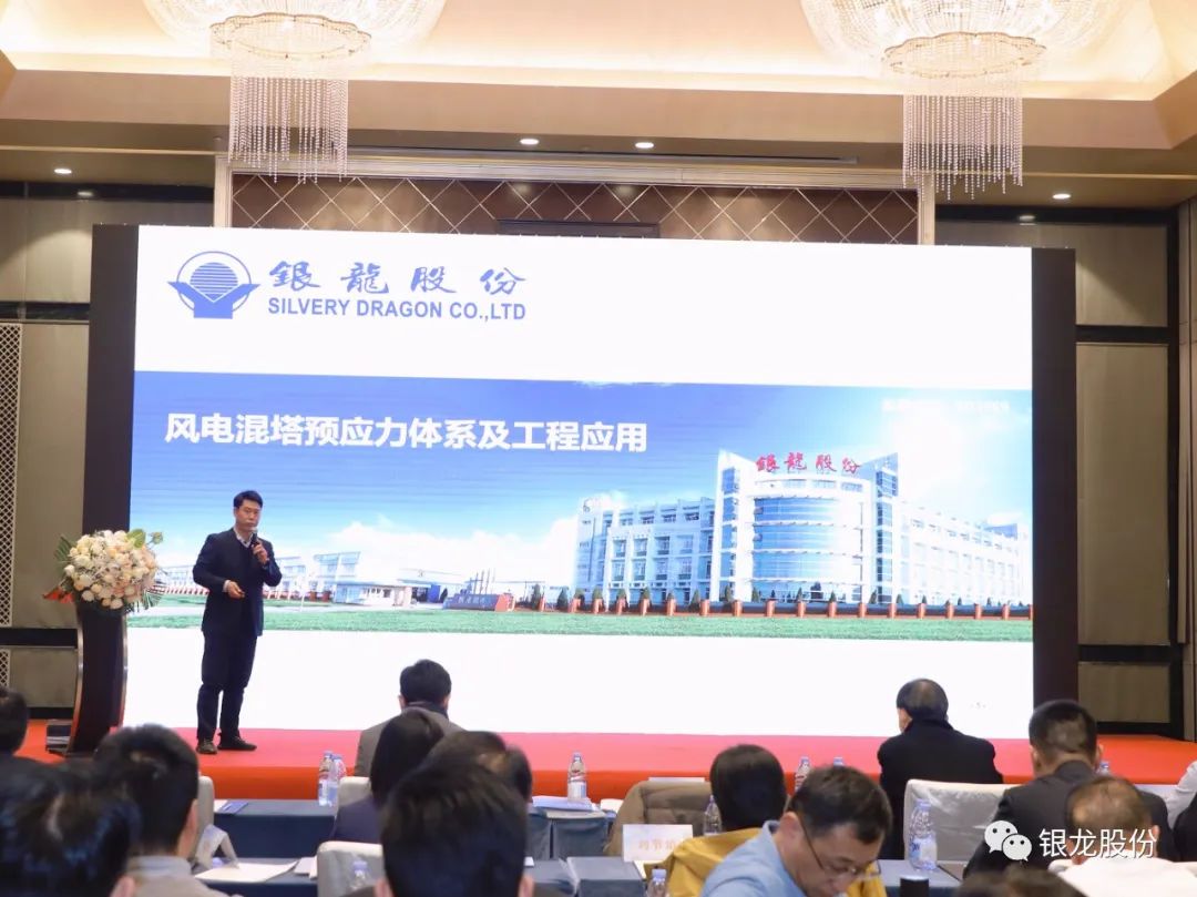 银龙股份预应力材料副总经理金庆波在论坛上汇报《风电混塔预应力体系及工程应用》,分析讲解混塔预应力体系设计工作、技术规范、检验指标以及风电混塔体系的智能检测和维护保养。从建立健全混塔行业的标准体系出发,对混塔生产和施工环节技术工艺进行客观分析,并提出切实解决方案。