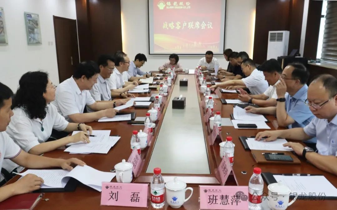 2024 年 7 月 11 日,一场具有深远意义的民生银行战略客户联动交流会议在银龙股份隆重举行。民生银行天津分行副行长朱郁,银龙股份董事长兼总经理谢志峰,天士力集团副董事长、总裁周波,中粮集团天津可乐公司总经理张以来,方大天津一商集团董事长杨占清,天津海钢板材董事长于茂松等,与会各方共同探讨合作发展新蓝图。