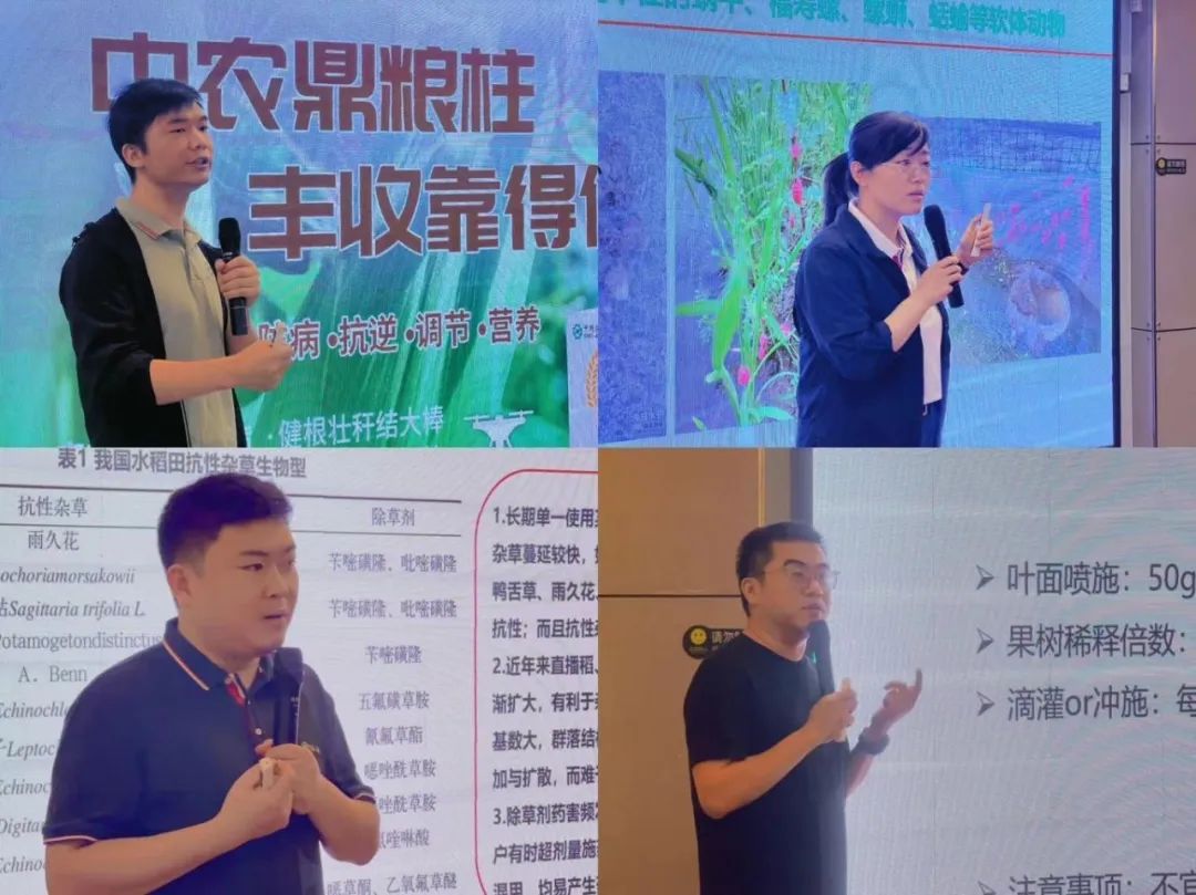 李艳淼和方忠民分别就杀螺剂梅塔、杀虫剂中农护盾、聚合磷钾光力金等多款差异化的产品进行了详细介绍。其中,梅塔已先后在枞阳、望江、六安、凤阳等多县进行了小龙虾安全性试验,表现出超长的持效期和优秀的杀螺效果,获得了当地农户的认可。