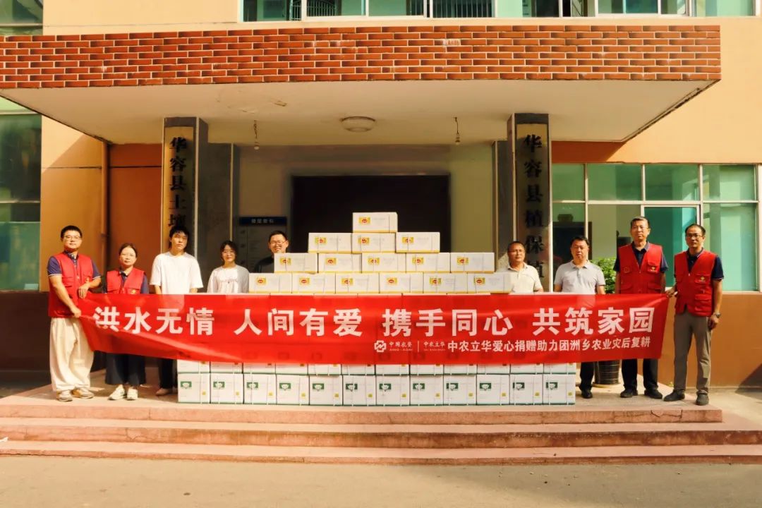 8月14日,中农立华战略发展部经理孙晓、作物健康部应用技术部经理兼湖南分公司负责人杨健,前往当地了解水稻受灾情况、调配资源,代表公司向华容县农业农村局捐赠了价值26.5万元的农资产品,用于4万亩次水稻的灾后恢复。这批农资包括植物生长调节剂和叶面肥,可以有效提高水稻抗逆性,缩短缓苗时间,促进快速封行,提高有效分蘖数和成穗率,为农作物抵御涝害、加速恢复生长提供了有力保障。