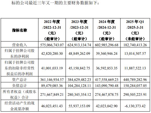 财务数据显示,台州农资2022年至2024年经审计的营业收入分别为5.75亿元、6.25亿元和6.03亿元;同期,归属于挂牌公司股东的净利润分别为4282.03万元、4884.93万元和3936.09万元。