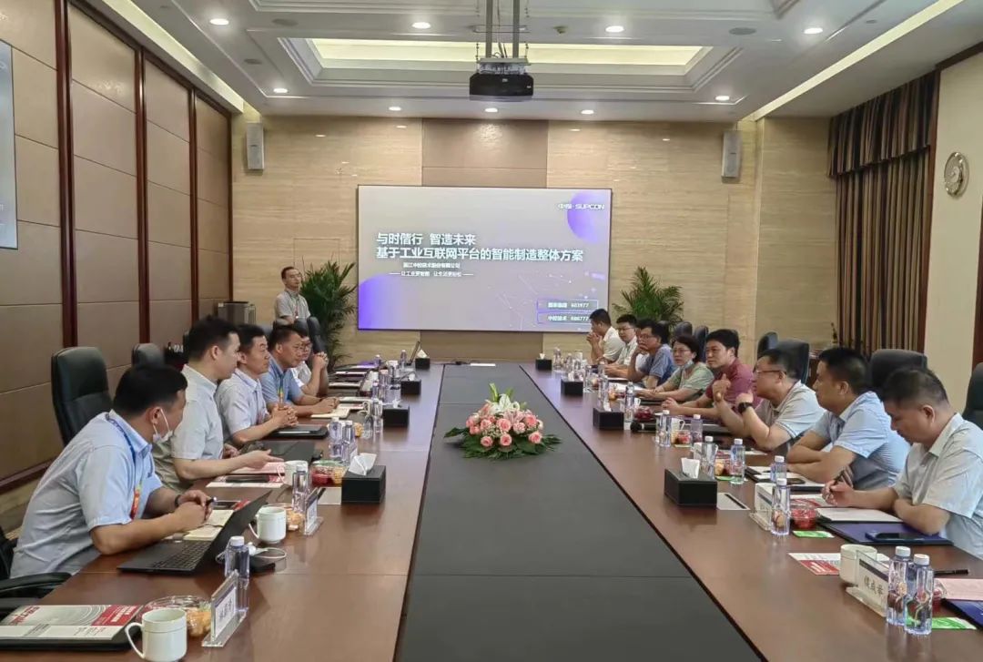 在中控技术科技体验中心,浙江中控工作人员详细介绍了该公司的发展历程和业绩状况,以及集散控制系统(DCS)、安全仪表系统(SIS)、网络化混合控制系统(PLC)等自动化控制系统。参观人员饶有兴致的了解了各类仪器仪表的实时监测和预警技术,探讨了有色金属冶炼、精细化工板块的企业对全流程自动化控制的技术需求,详细了解了工业互联网平台SUPOS以及设备管理、巡检管理、生产管控、高级报警等工业软件的功能应用。随后双方进行了基于国泰集团现状的智能工厂技术交流。
