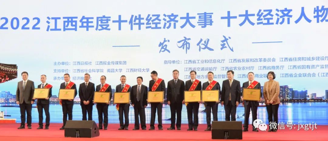 2022江西年度经济大事、经济人物、领军企业推荐发布活动由江西日报社、江西报业传媒集团主办,省工业和信息化厅牵头指导。先后组织推荐汇总全省年度经济大事素材30多件、优秀企业70多家、重量级经济人物50多名。经过评委会初评、网络点赞、信用信息查询、安全生产及环保情况核实等环节的比拼,终评审核后评选出2022江西年度十件经济大事、2022江西年度十大经济人物和25家2022江西年度领军企业。