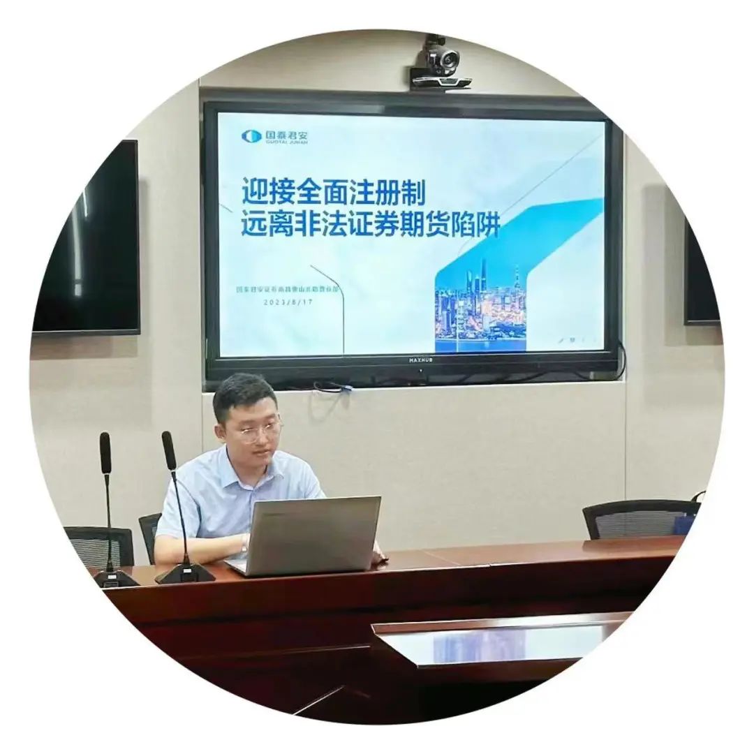 为做好全面实行股票发行注册制投资者教育和保护工作,引导投资者理性参与证券市场,帮助投资者理解交易规则、提升风险意识,8月17日,国泰君安江西地区投资者教育基地联合南昌象山北路营业部走进上市公司—江西国泰集团股份有限公司,围绕“全面注册制,改革向未来”主题,结合公司“818理财节”,共同举办了一场证企联合的投教宣传活动