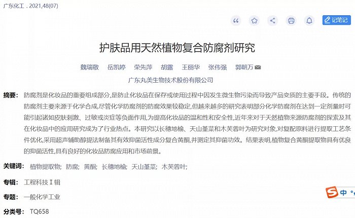 在外部合作上,丸美股份一方面推进与路博润、CRODA 禾大、DSM 帝斯曼等国际知名原料商的战略合作,从皮肤微生态、绿色护肤和抗敏抗衰等领域展开研究;另一方面,加大“产学研”和技术共创,联合中山大学光华口腔医院、广东省农科院、哈尔滨工业大学等高校、科研院所,分别在口腔护理、生物材料和超分子等领域展开合作研究,为公司的技术和储备提供支撑。