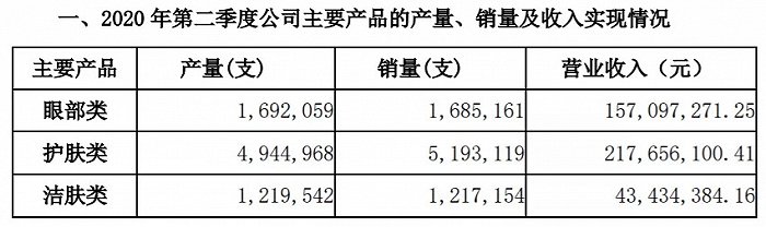 对比来看,眼部类和洁肤类产品的产量、销量、营收相较去年同期均有所下降,眼部类产品降幅较大;护肤类产品的产量、销量、营收相较去年同期都有较大增长。