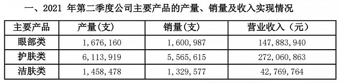 同日,丸美股份也发布了2021年第二季度主要经营数据的公告。公告中,丸美股份第二季度主要产品总营收4.63亿元(由主要产品营收相加所得),结合2020年第二季度数据,本季营收相较去年同期增长10.65%。