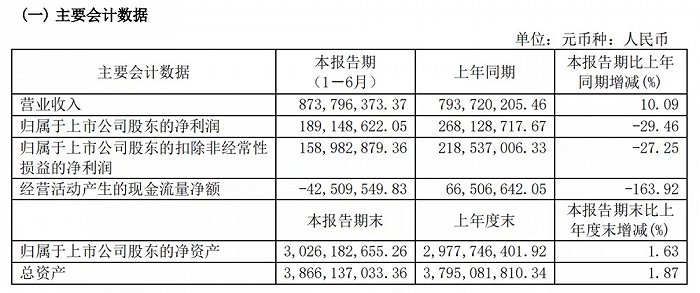 公司毛利率64.06%,同比略有下降;公司归属于上市公司股东的净利润约1.89亿元,同比下降29.46%;扣非后归属于上市股东的净利润1.59亿元,同比下降27.25%;以及经营性现金流同比下降163.92%。