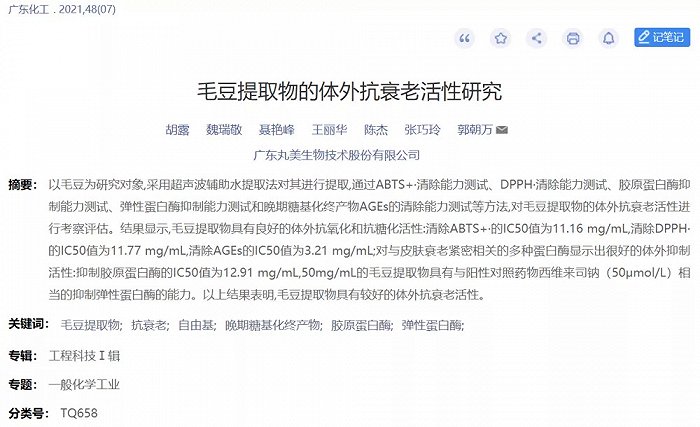 2021年3月,丸美股份与暨南大学基因工程药物国家工程研究中心校企共创重组人源化胶原蛋白,成功应用于新生物科技抗衰品牌“美丽法则”并推向市场。