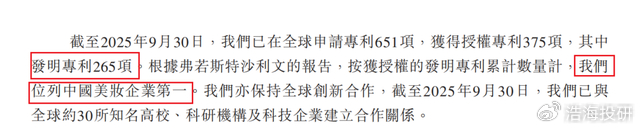 整体专利情况摘自《招股说明书》