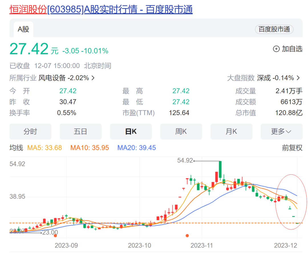 到12月7日,恒润股份的股价已经连续第三个交易日跌停。