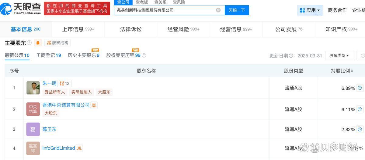 天眼查App信息显示,兆易创新成立于2005年4月,位于北京市,前身为北京芯技佳易微电子科技有限公司。目前,该公司的注册资本约6.6亿元,法定代表人为何卫,主要股东包括朱一明等。其中,何卫为兆易创新总经理,朱一明为董事长。