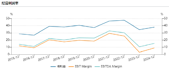 净利率变化与净利润同步,2023年降至2.8%的低点,2024年回升至15.0%,但仍低于2022年的25.3%,反映出公司成本控制和盈利能力在行业周期中的波动。