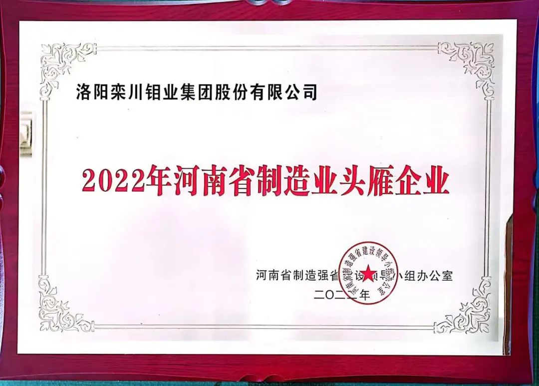 近日,从工信部门获悉,河南省制造强省建设领导小组办公室以“豫制造强省办【2022】25号”下发通知,公布了经认定的92家河南省制造业头雁企业,洛阳栾川钼业集团股份有限公司赫然在列。