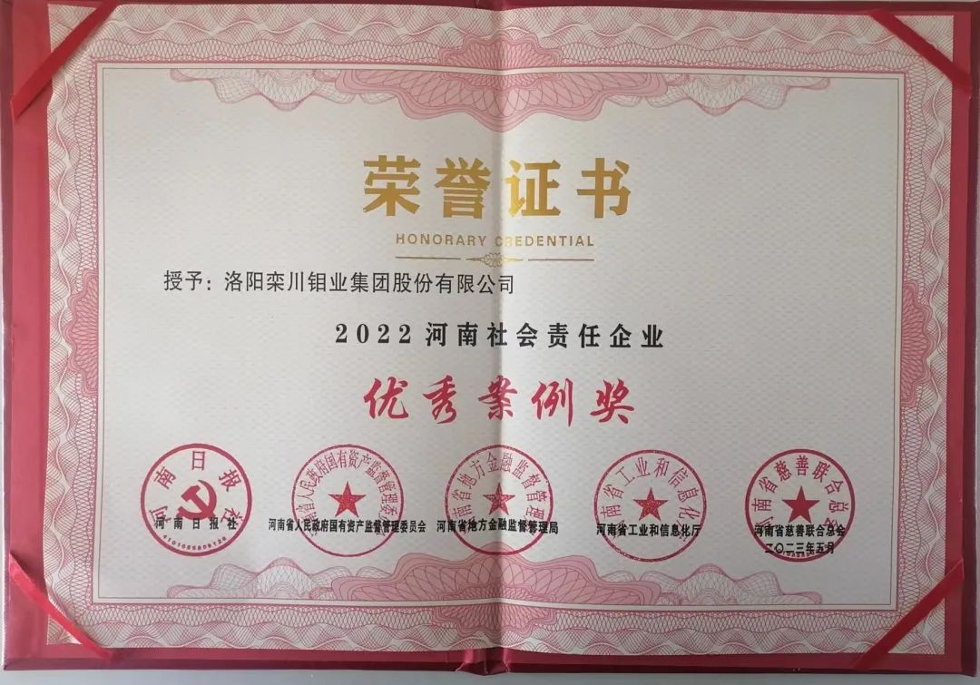 洛阳钼业荣获“2022河南社会责任企业”年度企业奖及2022河南社会责任企业优秀案例奖。据悉,洛阳钼业已经连续三年获得河南社会责任企业殊荣。
