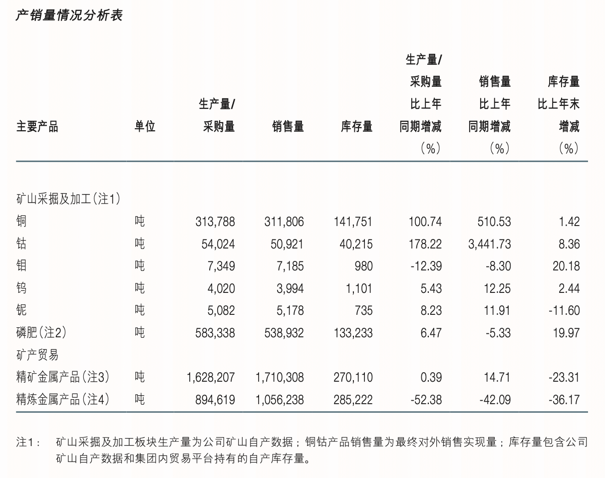 今年上半年洛阳钼业业绩大涨主要在于铜、钴两大产品的产销量以及盈利水平相应提升。