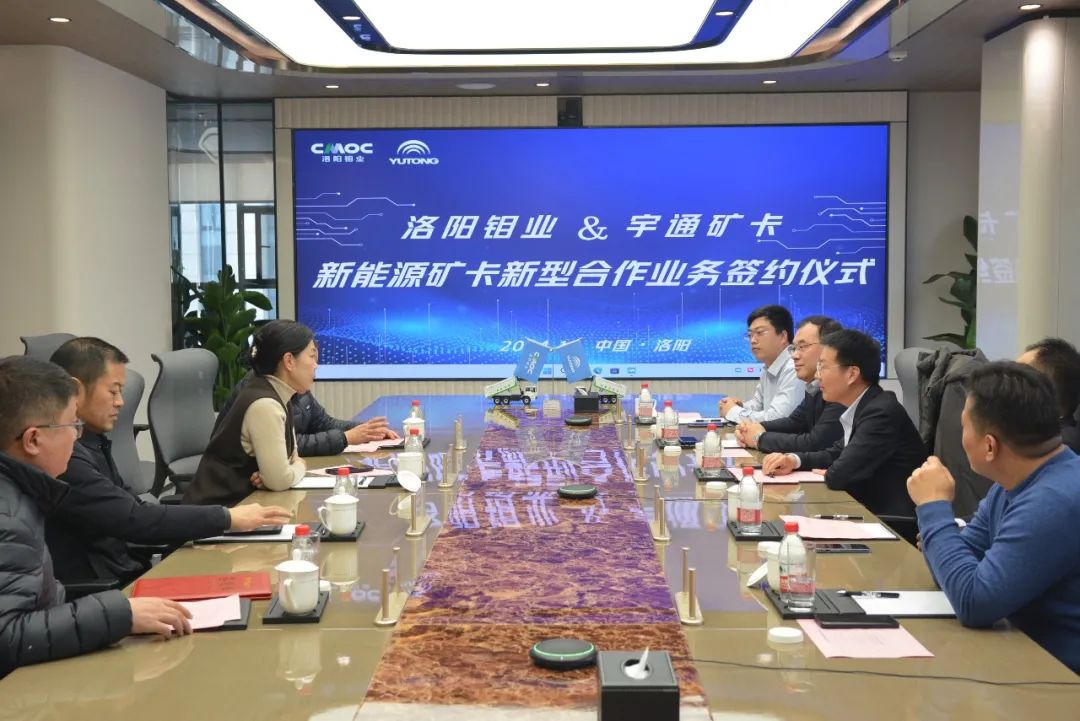 12月25日,洛阳钼业与宇通矿卡在洛阳钼业智慧港举行新能源矿卡新型合作业务签约仪式,郑州宇通矿用装备有限公司总经理盛肖、洛钼中国区总经理王争艳、副总经理许文辉出席签约仪式。
