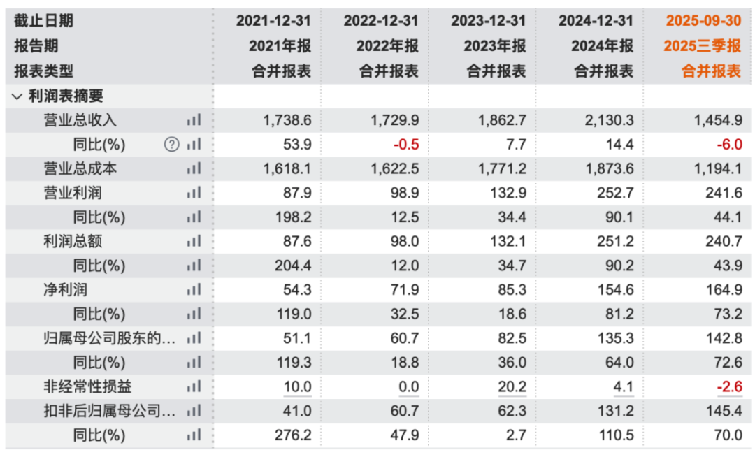 2025年前三季度,洛阳钼业主要产品铜产量为54.3万吨,同比增长14.14%;钴8.8万吨,同比增长3.84%。