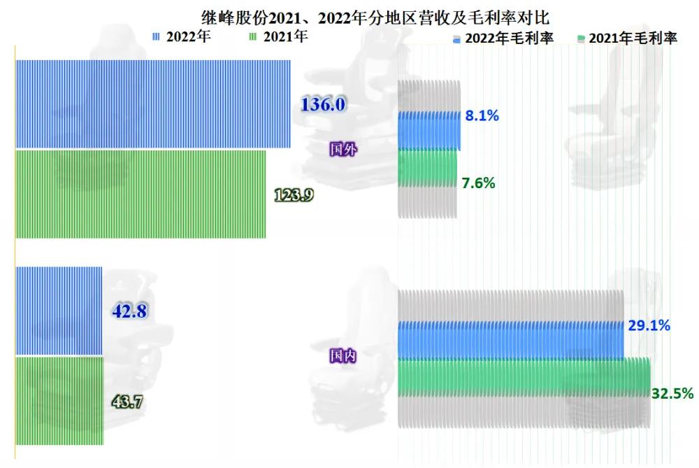 以海外市场为主的继峰股份,相对于以国内市场为主的汽配同行们,经营情况显然还是要好一些,其2022年亏损并非主要是当期主营业务的原因导致的。但是,行业的变化对其也不是没有影响,其国内市场的毛利率下降,也会让其后续经营面临较大的压力。