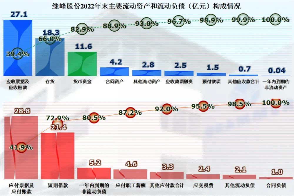 其流动资产中主要构成是应收票据及应收账款、存货和货币资金,流动性差异较大的三类资产在前三位中各占一席。其流动负债中前三位是应付票据及应付账款、短期借款和一年内到期的非流动负债。继峰股份的刚性偿债压力其实是不低的。