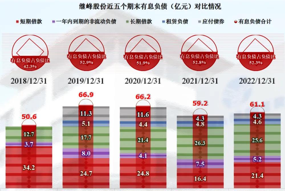 有息负债并不止流动负债中有,其各类融资方式基本上都用上了,在2021年融资规模下降7亿元以后,2022年又有所增长,如果行业持续低迷,60亿元的有息负债并不是小的负担。