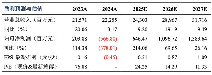 我们维持公司2025-2027年归母净利润分别为6.46亿元、10.97亿元、13.84亿元的预测,对应的EPS分别为0.51元、0.87元、1.09元,2025-2027年市盈率分别为24.25倍、14.29倍、11.33倍,维持“买入”评级。