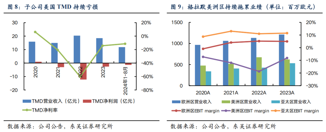公司2024年完成TMD的剥离和出表,有利于改善格拉默美洲区的盈利能力。TMD子公司由格拉默于2018收购并完成并表,整体产品与公司主业相关性不大,协同性较弱,且常年处于亏损状态,持续对格拉默海外区域业绩产生拖累。因此,公司将美国TMD剥离后将明显改善格拉默美洲区的经营状况。